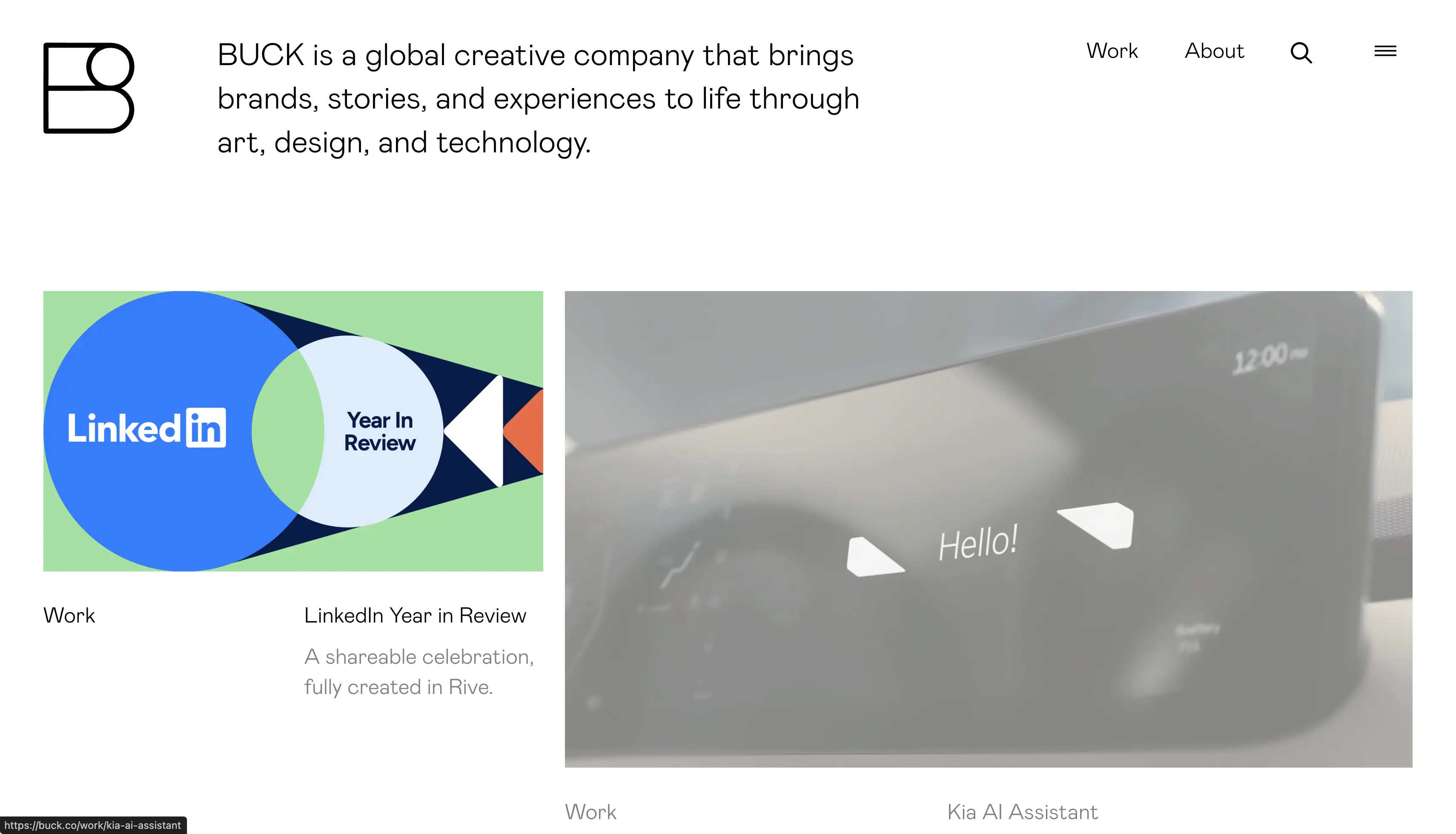 Buck is a design and animation studio known for combining graphic design, motion, and storytelling into cohesive brand experiences. The agency has built a strong reputation in entertainment, technology, and media through visually distinctive and highly crafted work.